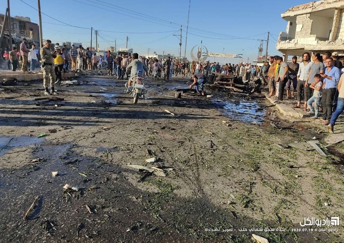 ستة شهداء و٧٥ جريح كحصيلة اولية اثر إنفجار سيارة مفخخة على دوار بلدة سجو القريبة من معبر باب السلامة#سوريا pic.twitter.com/Bbw1QUOYkN