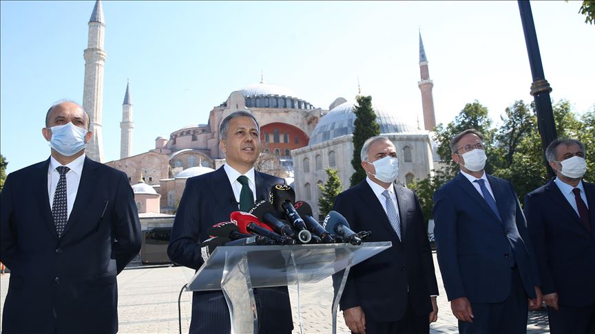 وكان الرئيس التركي، رجب طيب أردوغان، قد صرح أن موعد إقامة أول صلاة في مسجد أيا صوفيا سيكون يوم الجمعة الموافق 24 يوليو/ حزيران الجاري.