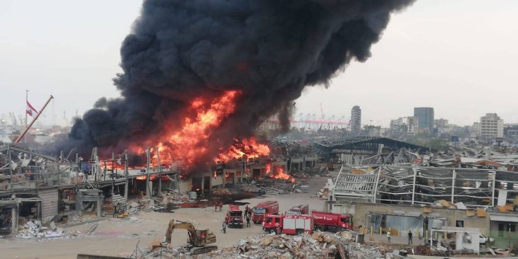 وغطى الدخان الكثيف المتصاعد من النيران العاصمة بيروت، فيما أخلى البعض المباني المحيطة بالمرفأ وسط حالة ذعر، خوفا من تكرار كارثة الانفجار.