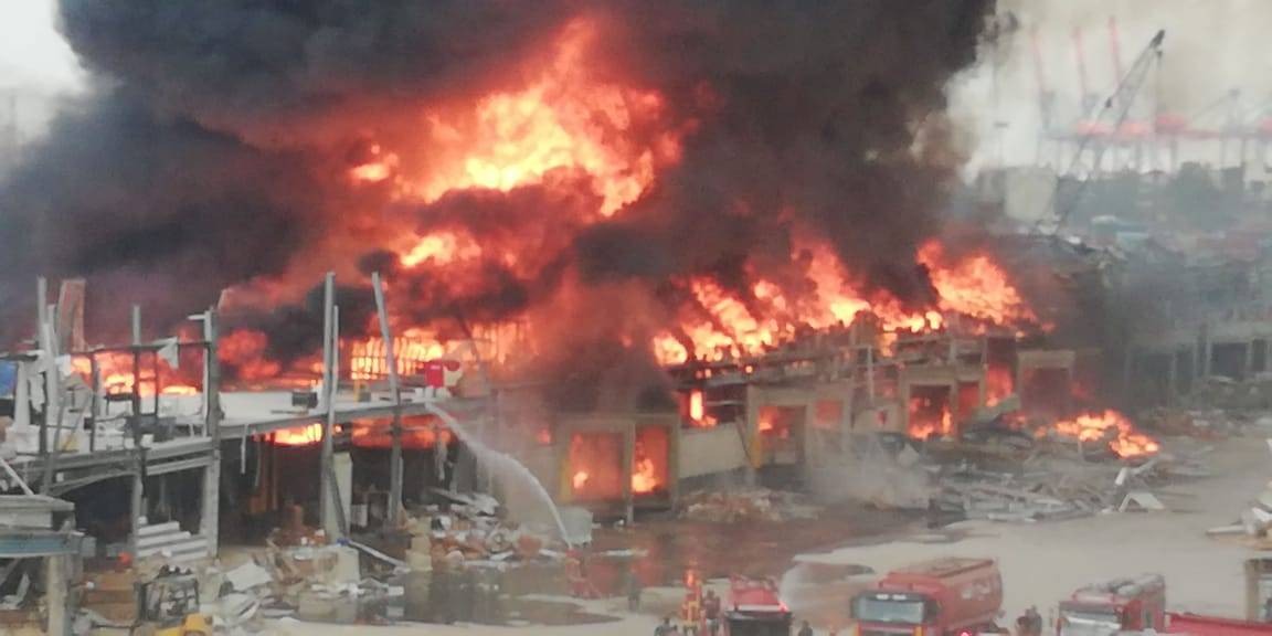 وتبين أن الحريق اندلع في المنطقة الحرة في مرفأ بيروت.