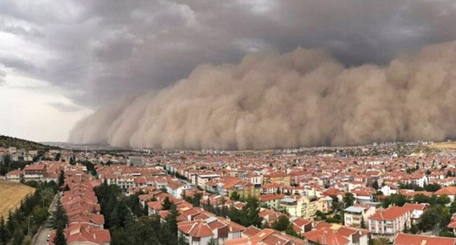 أنقرة (زمان التركية) – نشر مستخدمي مواقع التواصل الاجتماعي في تركيا، مقطع فيديو ألتقط أمس السبت، أثناء هبوب عاصفة ترابية ضخمة غطت أجزاء كبيرة من العاصمة أنقرة، لدرجة انعدمت فيها الرؤية.