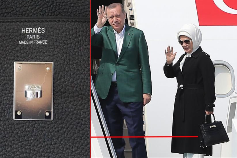 وبعدما نشر نسطاء على مواقع التواصل الاجتماعي صورا لقرينة أردوغان تحمل حقائب يد فرنسية ثمينة في أكثر من مناسبة، تساءل الصحفيان بموقع TR24، بولنت كوروجو ولافند كناز، عن ما إن كانت قرينة الرئيس أمينة أردوغان ستنصاع لحملة مقاطعة المنتجات الفرنسية التي دعا لها الرئيس وتتخلى عن حقيبتها من ماركة هيرميس الفرنسية التي يبلغ ثمنها 50 ألف دولار.