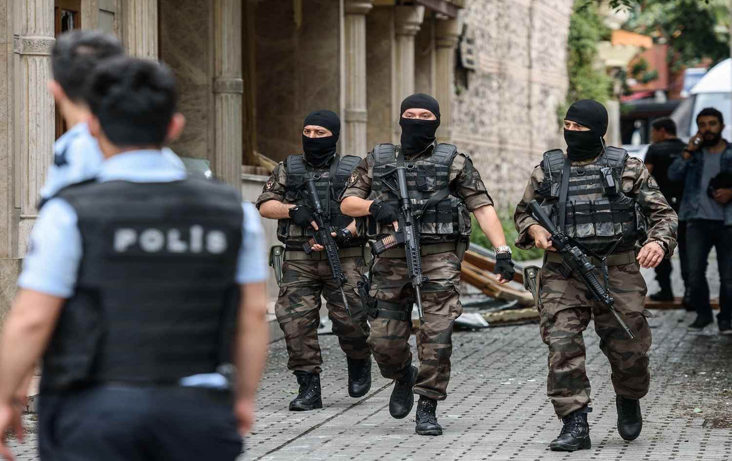 Turkish special force Police officers secure area around the site of a bomb attack that targeted a police bus in the Vezneciler district of Istanbul on June 7, 2016. A bomb ripped through a Turkish police vehicle near Istanbul's historic centre, killing seven officers and four civilians and adding to security concerns after a string of attacks in Turkey's biggest city.The bomb targeted a service shuttle bus carrying officers from Istanbul's anti-riot police as it was passing through the central Beyazit district close to many of the city's top tourist sites, Istanbul governor Vasip Sahin said in a live statement on Turkish television. / AFP / OZAN KOSE (Photo credit should read OZAN KOSE/AFP/Getty Images)