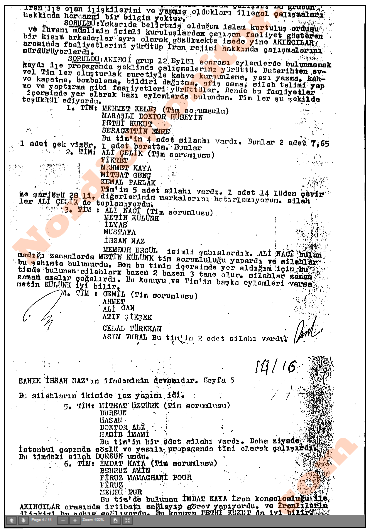 وفي إفادته أسرد إحسان ناظ، أحد أعضاء التنظيم الذي خضع للمحاكمة من خارج القضبان في تركيا وحُكم عليه بالسجن، ثم تمكن من الهرب إلى إيران، بمساعدة القنصل الإيراني عام 1981، تفاصيل العديد من عمليات الاغتيال والاعتداءات والتفجيرات والدعاية المؤيدة للخميني.