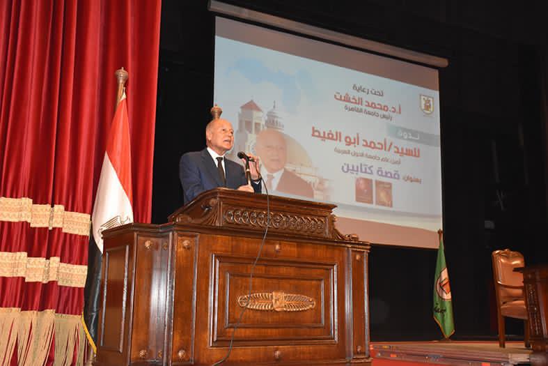 وجاءت الندوة تحت عنوان “قصة كتابين”، وأدارها الأستاذ الدكتور محمد الخشت رئيس الجامعة، حيث تناولت كتابيّ “شاهد على الحرب والسلام”، و”شهادتي” واللذين يتضمنانِ مذكرات أبو الغيط حول جولات الصراع العربي الإسرائيلي وعملية السلام، وكذا فترة توليه لوزارة الخارجية المصرية من 2004 وحتى 2011.