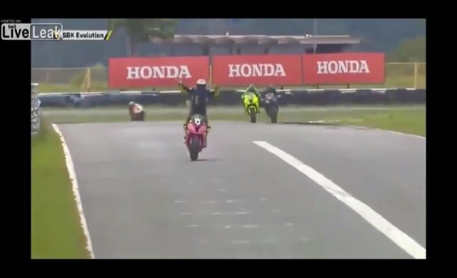 قبل الوصول لخط النهاية ببضعة أمتار، تعجل المتسابق البرازيلي أندريه فيريسيمو، وبدأ في الاحتفال بالنصر من خلال الوقوف على دراجته ملوحًا بيديه، وتهدئة سرعة دراجته النارية.