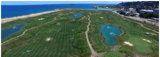 وذكرت صحيفة سوزجو أن بلدية سامسون بدأت في عام 2015 أعمال إنشاء ملعب الجولف وردمت جزء من مياه البحر. وكلّف المشروع، الذي اتخذ رئيس البلدية السابق يوسف ضياء يلماز أول خطواته الانشائية، البلدية نحو 27 مليون ليرة.