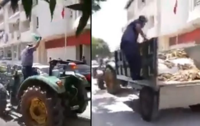 نائب رئيس حزب الشعب الجمهوري، ولي أغبابا، نشر على تويتر اللقطات الخاصة بالواقعة، ويظهر المزارع الذي ينتج التبغ يسكب البنزين على جسده أولا من ثم قذف التبغ الذي أحضره على متن جراره صوب البنك.
