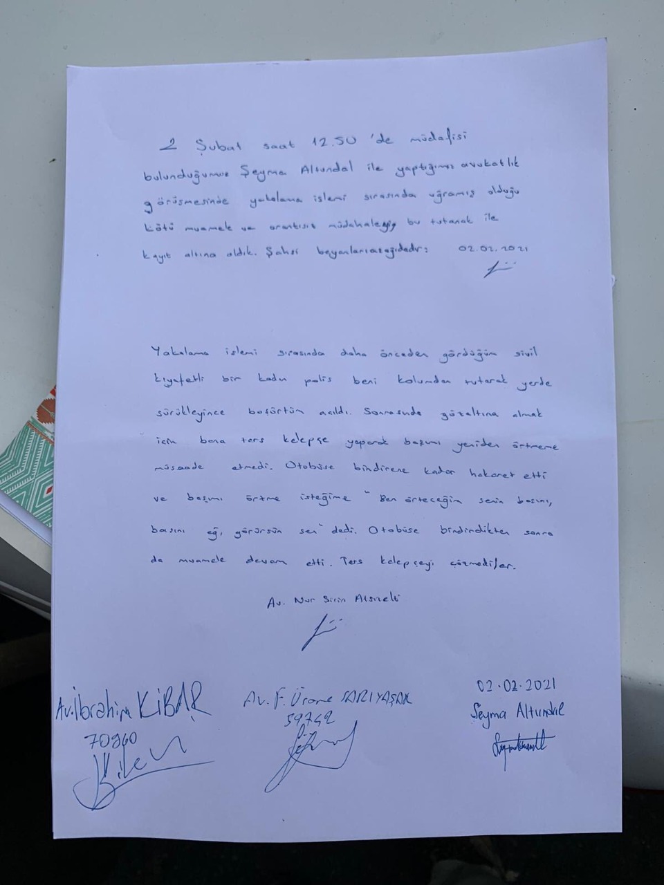نورسينا قالت: “لا نستطيع تلقي أية أنباء من والدي منذ 36 يوما. كنت قد تقدمت ببلاغ حول اختفاء في 31 ديسمبر/ كانون الأول الماضي، وبالأمس علمت أنه تقرر وقف متابعة البلاغ عندما ذهبت لمقابلة المدعي العام في كوجالي. المدعي العام أبلغني أنه لا يوجد جرم يمكنه التحقيق فيه، فأخبرته أنني أعتقد بأن والدي مختطف. فأبلغني بأن أتقدم بطلب إلى نيابة أنقرة. الإجراءات متواصلة عبر أنقرة ولم يتم إحراز أي تقدم حتى الآن”.