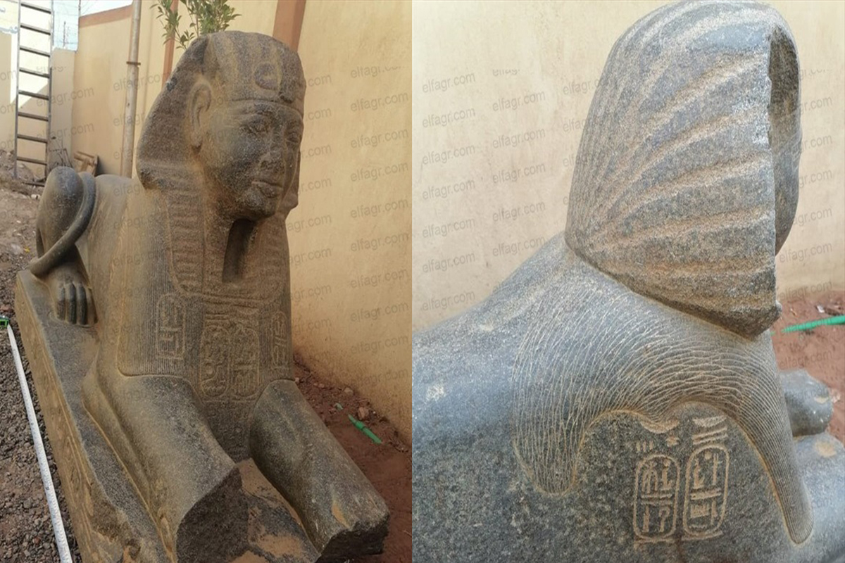 ووفق “الفجر” تبين بعد المعاينة الفنية أن التمثال من الجرانيت الأشهب على هيئة أسد بوجه آدامي رابض على قاعدة مستطيلة، ويرتدي النمس تزينه حية الكوبرا ومن أسفله وشاح مزخرف يغطي الصدر والكتفين، بهيئة “أبو الهول”.