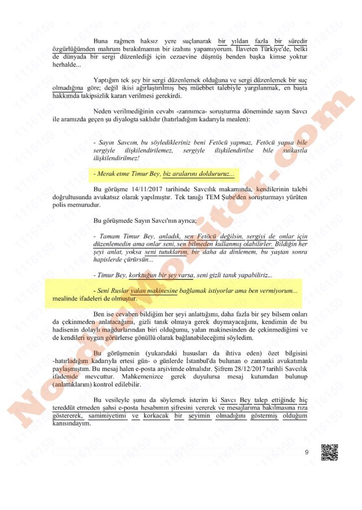 هذه المعلومات وردت ضمن بيان دفاع أوزكان، الذي حصل نورديك مونيتور على نسخة منه، والذي تم تسليمه إلى المحكمة في 8 يناير/ كانون الثاني 2019.