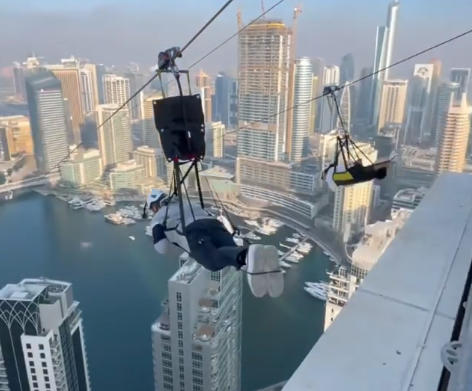 وعلى حسابه الرسمي على موقع التواصل الاجتماعي انستجرام، نشر الشيف بوراك مقطع له وهو يستمتع بالانزلاق من أعلى برج “دبي مارينا” على ارتفاع 170 متر عبر حبال طويلة ممدودة في الهواء.