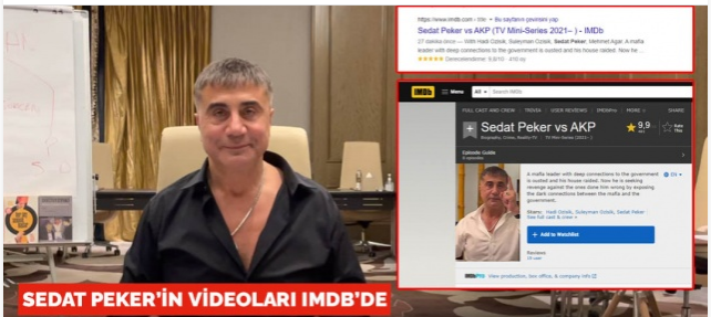 مقاطع الفيديوهات الخاصة بسادات بكر على موقع “IMDb” جاءت بعنوان “Sedat Peker vs AKP” التي تعني بالعربية “سادات بكر في مواجهة حزب العدالة والتنمية”.