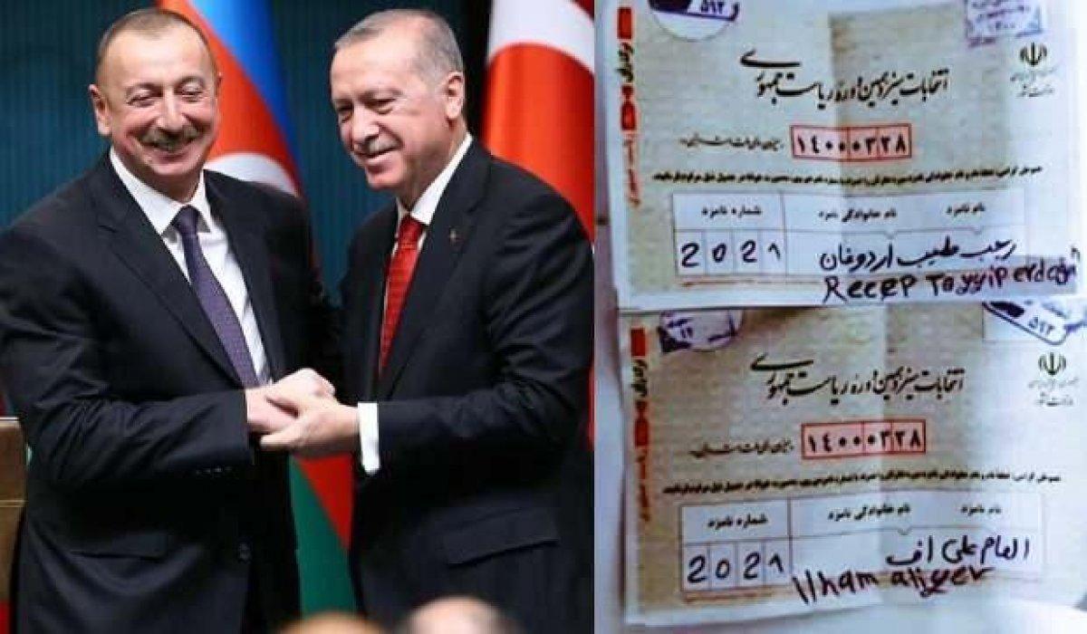 وخلال أعمال الفرز تم العثور على أوراق اقتراع تحمل اسم الرئيس التركي، رجب طيب أردوغان، ونظيره الأذربيجاني، إلهام علييف.