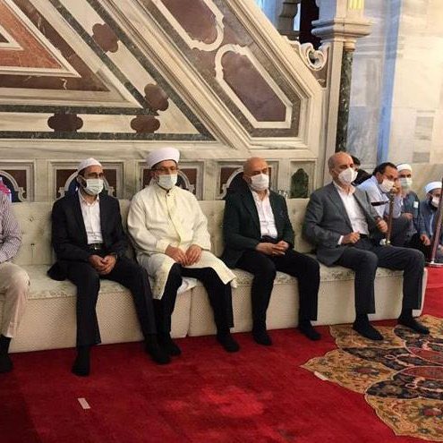 كما قيم مفتي بيوغلو السابق ونائب إسطنبول السابق إحسان أوزكس الصورة الظاهرة في مسجد الفاتح على النحو التالي: “عندما كنت مفتيًا أقيمت كثير من مثل هذه المراسم وحضرت فيها. في إحداها، تألمت أقدامنا من الجلوس على ركبنا بعد أن استغرقت وقتًا طويلاً. الصورة في مسجد الفاتح ليست محرمة شرعاً ولا خاطئة. لكن لا يمكن إقامة بروتوكول في المسجد أو وضع مقاعد خاصة مختلفة مقاعد الآخرين. لأن عباد الله متساوون في المساجد وبيوت الله ودور العبادة. فقط كبار السن وغير القادرين على الجلوس يمكنهم الحصول على مقاعد. لم تكن هناك مثل هذه الصور في ثقافتنا”.