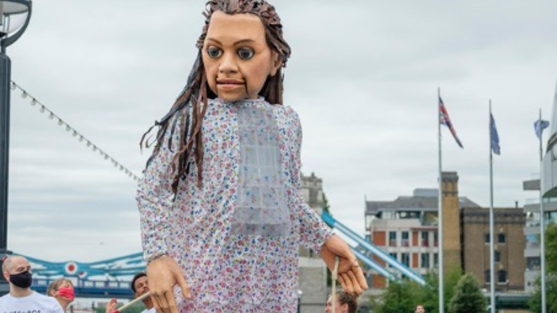 واعتبر أن ضخامة حجم الطفلة “آمال” وطولها البالغ 3.5 متر، هدفه أن لا يتم تجاهلها، الدمية تنشر للعالم قصص وتحديات الأطفال اللاجئين حول العالم.