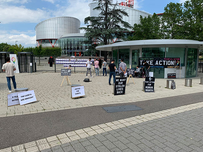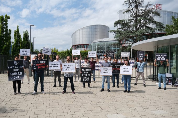 أنقرة (زمان التركية) – نظم عدد من الطلاب العسكريين المفصولين تعسفيًا عقب محاولة انقلاب 2016 احتجاجا أمام مقر المحكمة الأوروبية لحقوق الإنسان، للفت الأنظار للمئات من زملائهم المعتقلين.