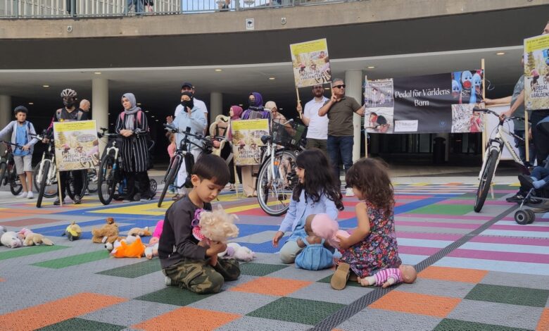 وأدلى المتطوعون، الذين وصلوا إلى ستوكهولم، عاصمة السويد، ببيانً صحفيً في ساحة سيرجيل تورج.