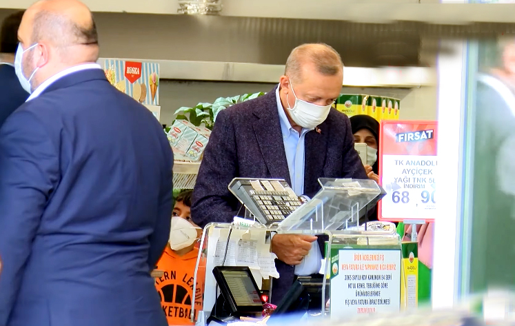 أردوغان زار سوقا بالقرب من منزله برفقة زوجته أمينة وابنته سمية، حيث قضى بداخله نحو نصف ساعة من ثم توجه إلى الخزانة لسداد ثمن المشتريات نقدا. وتحدث أردوغان مع العاملين في السوق وعدد من المواطنين بداخله.