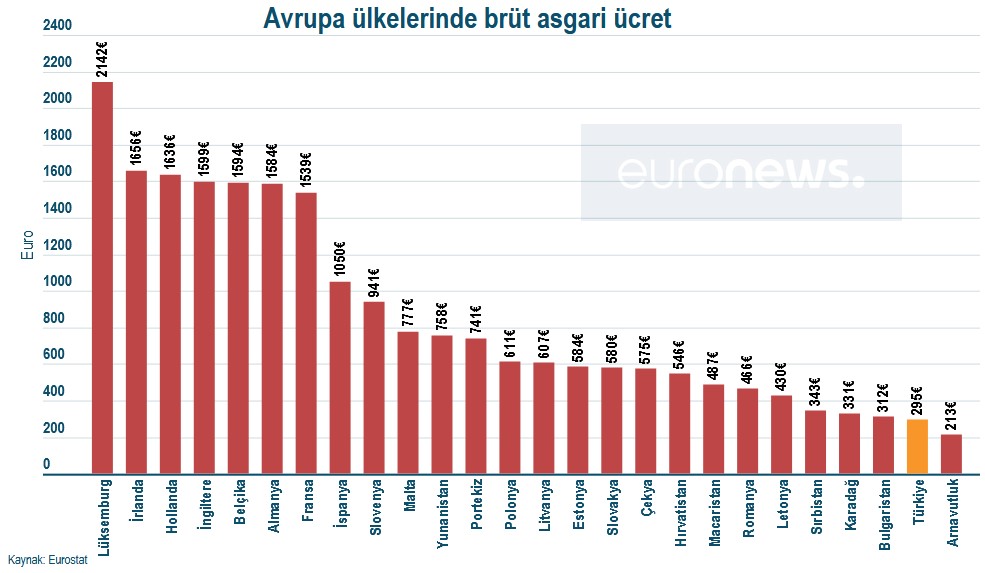 ومنذ مطلع العام الجاري تراجعت قيمة إجمالي الحد الأدنى للأجور في تركيا على صعيد اليورو بنحو 16 في المئة لتتراجع من 392 يورو إلى 329 يورو. وبهذا تذيلت تركيا دول الاتحاد الأوروبي من حيث الحد الأدنى للأجور متراجعة عن بلغاريا التي كانت تحتل المرتبة الأخيرة بإجمالي حد أدنى للأجور يبلغ 332 يورو.