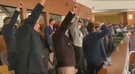 أنقرة (زمان التركية) – أثار هتاف “الله، القرآن، الرسول، القائد العام أردوغان”، الجدل في تركيا.