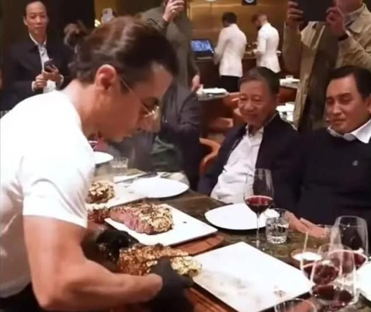 وزير الأمن العام الفيتنامي، تو لام، زار مطعم الشيف التركي، نصرت جوكتشه، في لندن، وتناول الوزير هناك خلال تواجده في مطعم نصرت، شريحة لحم ملفوفة بورق مطلي الذهب، أعدها له الشيف التركي، وأطعمه منها بنفسه.