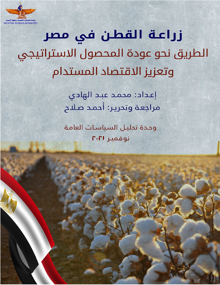 تُلقي هذه الورقة الضوء على أهمية إعادة الاهتمام بزراعة القطن في مصر، كأحد المحاصيل الاستراتيجية التي حققت لمصر عوائد اقتصادية وشهرة عالمية ضخمة منذ عهد محمد علي باشا عندما وصلت زراعة القطن المزروع في ذلك الوقت 2 مليون فدان، وتظهر حاليًا فرص قوية لإعادة رواج هذا المحصول من جديد في ظل تراجع الإنتاج عالميًا وزيادة الأسعار.