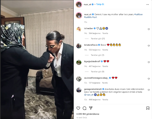 الشيف نصرت الذي اكتسب شهرة عالمية بحركته “ملح الطعام”، تعرض لهجوم واسع عقب نشره صورا مع والدته، موضحا أنه يلتقى بها لأول مرة منذ عامين كاملين.