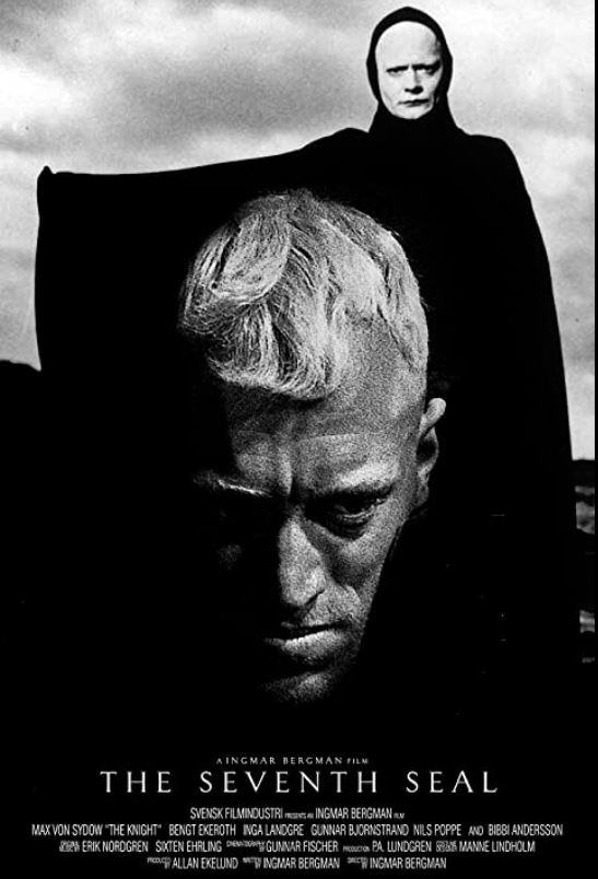 ففي ذاك الزمن، لم يخل الأمر من خيالات كاتب حولها المخرج العالمي إنجريد برجمان إلى عمل سينمائي رائع باسم “الختم السابع The Seventh Seal“.. ففي منتصف القرن الرابع عشر، يعود  “أنطونيوس” قائد جيش السويد المشارك في الحروب الصليبية مع مساعده “جينيس” بعد عشر سنوات من المعارك إلى الوطن، وقد نجا الرفيقان طوال تلك الفترة بأعجوبة من ويلات الحرب إلا أنهما عادا إلى بلدتهما ليكتشفا انتشار وباء قضى على أجساد البشر وجعل البلاد كلها مقفرة ومظلمة من شدة البؤس، فالدمار هو الوصف الأبرز للوطن الموبوء.