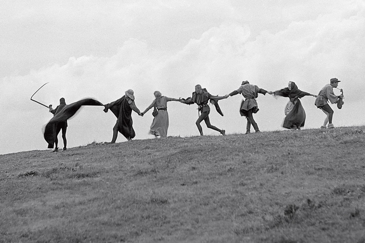 فالموت، وإن كان البشر قد اقتنعوا به كنهاية لحياتهم، إلا أن الفن  يبقى برسالته الممثلة في الغناء تارة وأداء الأدوار الهزلية تارة أخري.. فغناء زوجة المهرج لكلمات من أشعاره وموسيقى آلته جعلت الفارس “أنطونيوس” ينصت لها بحب، ليشعر بلحظات من الهدوء النفسي جعله ينسى، ولو مؤقتا، فكرة أن ساعة موته قد قربت، وينعم بمشهد الزوجة والزوج وطفلهما الذين ينعمون بالطمأنينة والسكينة برغم فقرهم.