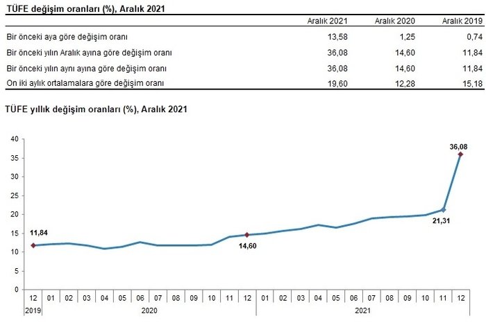 هيئة الإحصاء التركية أعلنت أن معدل التضخم لشهر ديسمبر/ كانون الأول الماضي بلغ 36.08 في المئة على الصعيد السنوي و13.58 في المئة على الصعيد الشهري.