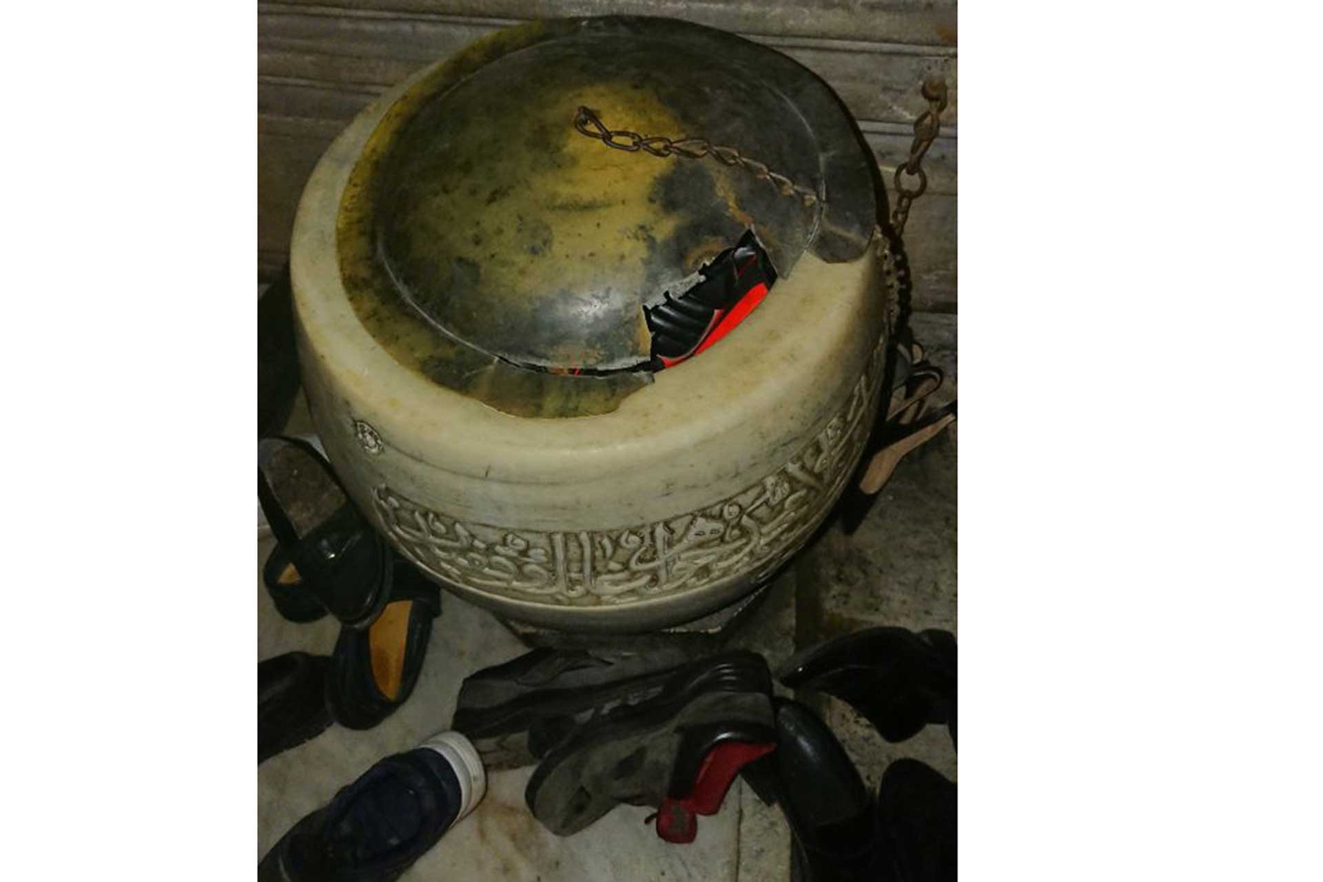 المدون التركي، عمر فاروق يافاشتاس، نشر صورة على حسابه في تويتر، تظهر إزالة غطاء خزان المياه التاريخي الذي يعود للعصر العثماني، وتحويله إلى مكان لوضع الأحذية.