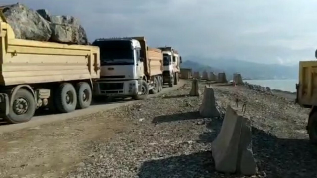 أفاد أحد سائقي الشاحنات ويدعى هاشم أوزترك ينقلون الأحجار من وادي اسكنجيدرى لردم ساحل البحر من أجل إنشاء الميناء اللوجستي الذي تتولى إنشائه شركة جنكيز للإنشاء في منطقة إييدرى.