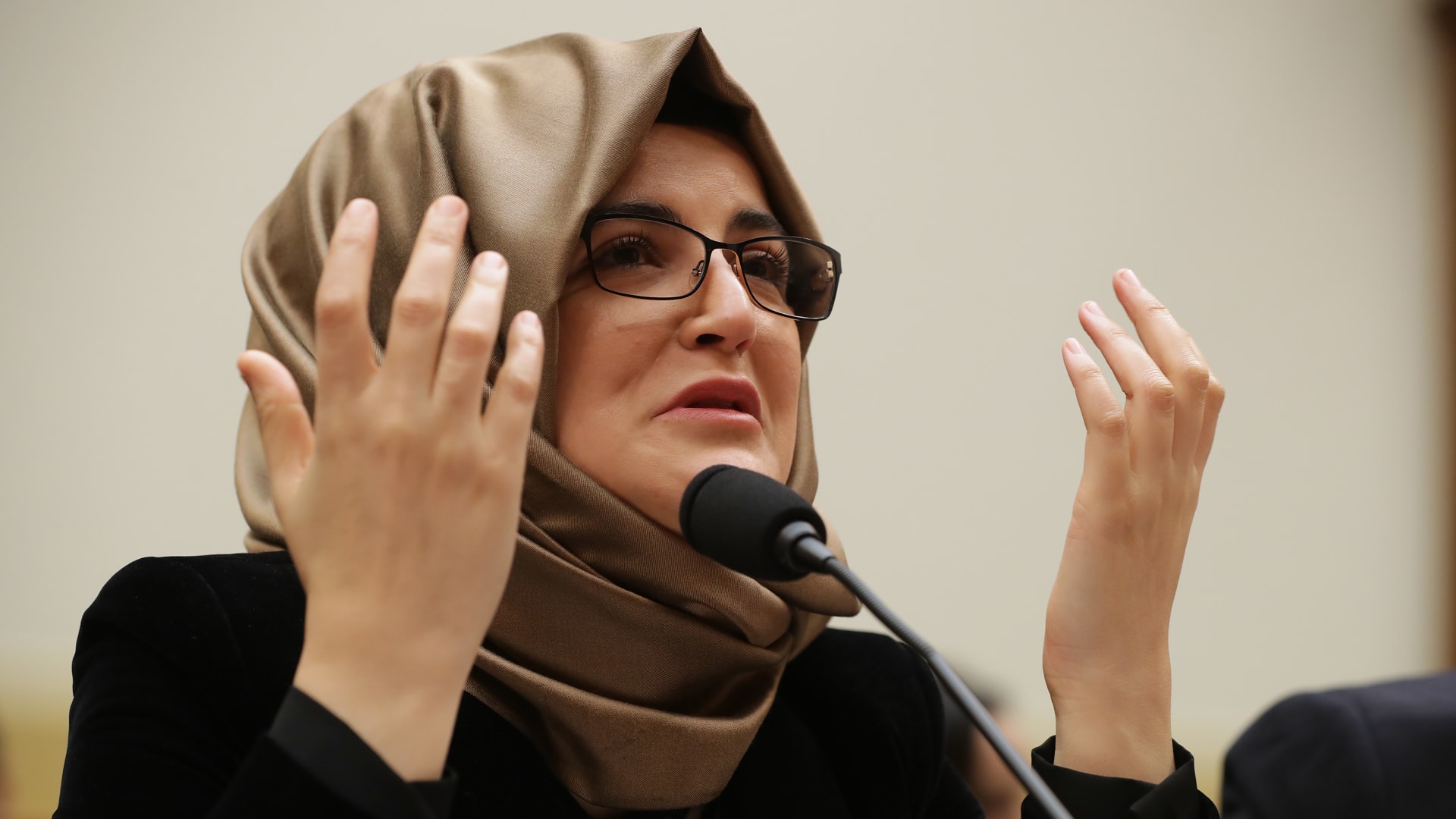 وأضافت: “أولا، أود أن أقول إنك تعلم، مجرد سماع ذلك أمر مدمر.. إنها أرملة جمال خاشقجي، ومن الواضح أن قلوبنا تتجه إليها والألم الذي تعيشه حاليا”.