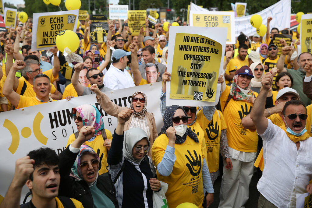 المظاهرة التي حظيت بمشاركة واسعة في مدينة ستراسبورغ الفرنسية، جاءت نيابة عن مئات الآلاف من الأشخاص الذين تعرضوا لانتهاكات حقوق الإنسان في تركيا، بما فيها الاعتقالات الجماعية، والتعذيب، والاختطاف.
