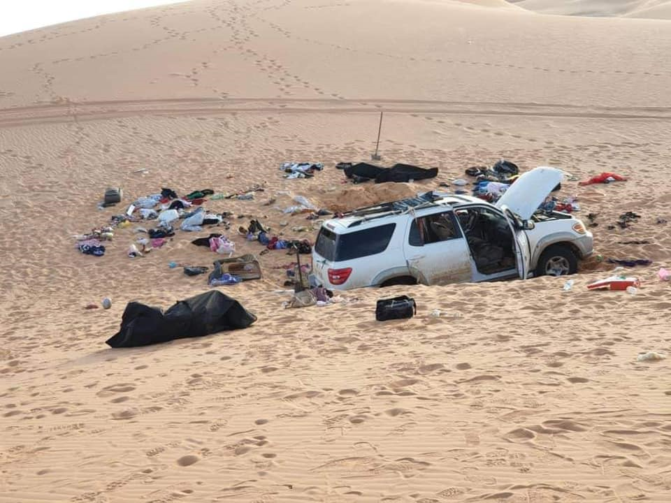 وأوضح جهاز الإسعاف والطوارئ بمدينة الكفرة أن “فريق الجهاز انتشل جثث 20 شخصا وجدت في الصحراء، بعد تعطل سيارتهم … وقضوا جميعا عطشا”، مبينا أن “السيارة كانت متوجهة من دولة تشاد إلى ليبيا، وعُثر عليها على مسافة 310 كلم جنوب الكفرة، على بعد 120 كلم عن الحدود الليبية التشادية”.