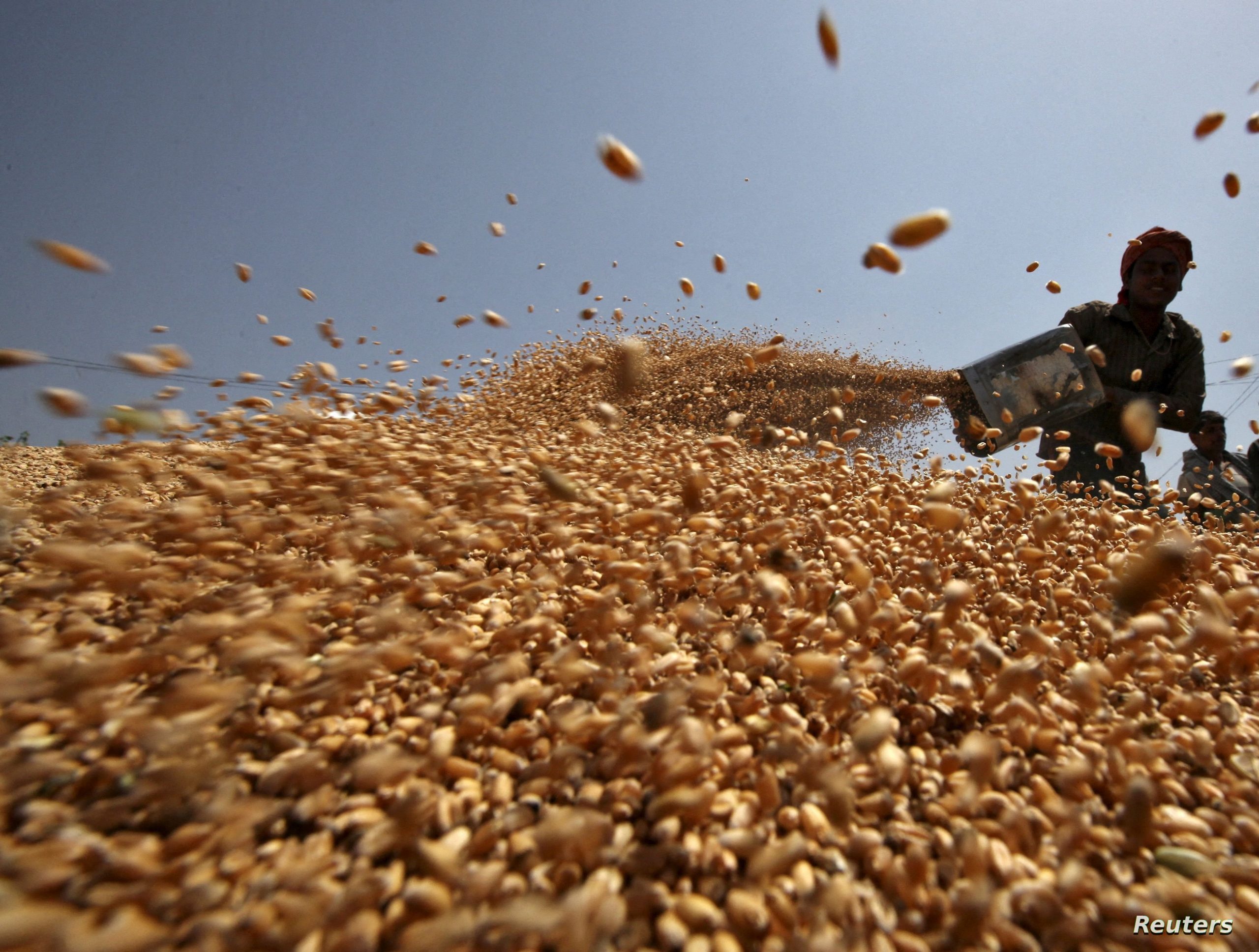FILE PHOTO: A worker spreads wheat crop for drying at a wholesale grain market in the northern Indian city of Chandigarh April 22, 2015. REUTERS/Ajay Verma/File Photo