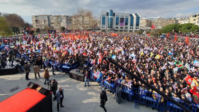 من جانبه تطرق الرئيس المشترك لحزب الشعوب الديمقراطي الكردي، مدحت سنجار، في كلمته خلال المؤتمر إلى الدعوى القضائية القائمة بحق رئيس بلدية إسطنبول، أكرم إمام أوغلو، قائلا: “لماذا كانت الانطلاقة من إسطنبول؟ لأن هذه السلطة الظالمة والهدامة ترغب في تحويل إسطنبول إلى قاعدة الفاشية. يريدون إطلاق النظام الذي يرغبون في فرضه على تركيا من هنا، لكننا سويا نؤكد رفضنا هذا وأن إسطنبول ستتصدى للفاشية”.