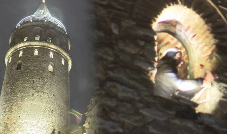 بسبب العاصفة وتساقط الثلوج التي زادت في ساعات المساء، تحطم السور الحديدي في الطابق الثامن من برج غلاطة.