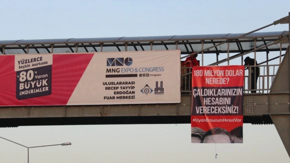 وفتحت نيابة أرضوروم تحقيقًا ضد رئيس شعبة حزب النصر ببلدة ياقوتية بمدينة أرضوروم، يونس كايا، وعضو مجلس إدارة الحزب، حسن برهان أيدمير، بسبب لافتة كتب فيها “أين ذهبت 180 مليون دولار؟ ستحاسبون على ما سرقتم. استيقظي يا أرضوروم فهناك لص” تم تعليقها على مقر الحزب وجسر ومعبر علوي.