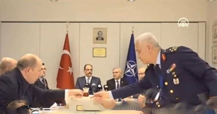 وفي تلك الأثناء أقدم ممثل الجيش التركي لدى حلف الناتو، الجنرال جوكسال كاهيا، عل جمع أكواب الشاي الفارغة.