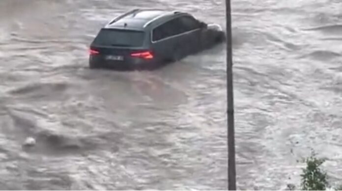 وأظهرت مقاطع فيديو تم تداولها على مواقع التواصل الاجتماعي، تساقط أمطار وحبات برد على المدينة، التي غمرت المياه بعض شوارعها وجرفت سيارات فيها.