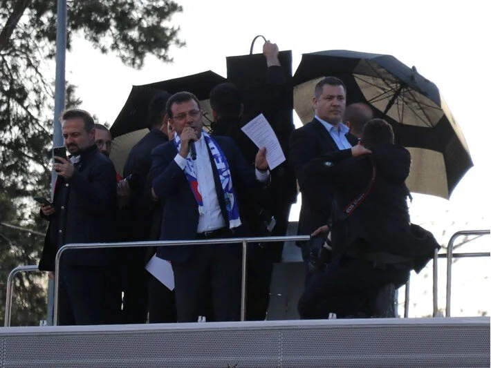 وقال إمام أوغلو مخاطبًا الشرطة بعد الهجوم عليه وعلى مسيرته: “الحجارة انهالت علينا من جميع الجهات. لم يفعل رجال الشرطة أيّ شيء. هذه تعليمات لهم. الشرطة التي تراقب هذا، نحن نراقبها أيضًا. أنا حاكم هذه المدينة، أراقبكم”.