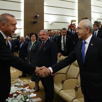 وخلال كلمته في أول اجتماع لكتلة حزب العدالة والتنمية الحاكم بالدورة التشريعية الثامنة والعشرين، أشار أردوغان إلى حديث كيليجدار أوغلو عن استعداده لضم 16 حزبا للتحالف السياسي عوضا عن 6 أحزاب إن استدعى الأمر هذا.