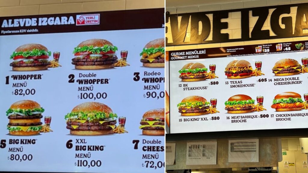 وفقا لقوائم الأسعار التي تم تناقلها، فقد ارتفع سعر وجبة الهمبرجر التي كانت باع في مطار صبيحة كوكجن بـ 100 ليرة تركية قبل فترة تطبيق سياسة الفائدة المنخفضة، إلى 580 ليرة تركية حاليا.