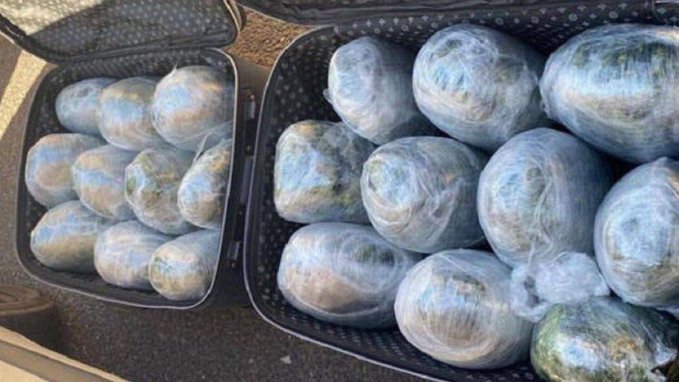 وتمكنت الشرطة من إيقاف السيارة والتقاط الحقيبة التي تبين احتوائها على 20 حزمة من مخدر Shunk تزن 19 كيلوجرام و659 جرام.