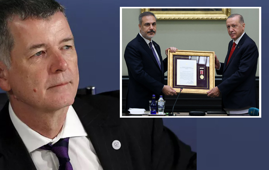 قبل اجتماع المجلس الأمني التركي (MGK)، منح الرئيس التركي، رجب طيب أردوغان، وسام الخدمة المتميزة للدولة لوزير الخارجية هاكان فيدان، نظرًا لمهامه في جهاز الاستخبارات التركي على مدار 13 عامًا، قبل أن يتولى منصب وزير الخارجية.