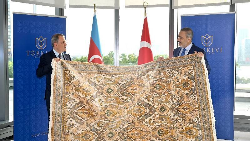 أنقرة (زمان التركية) – قدم وزير الخارجية الأذربيجاني جيهون بايراموف، “سجادة كاراباخ” كهدية لوزير الخارجية التركي هاكان فيدان في نيويورك لاستخدامها في المنزل التركي في أمريكا.