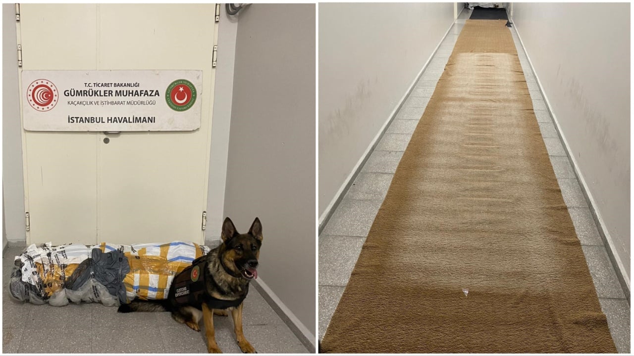 وبحسب بيان وزارة التجارة، بينما كانت فرق إنفاذ الجمارك تقوم بفحص البضائع التي وصلت إلى قسم الشحن السريع بمطار إسطنبول لإرسالها إلى الخارج، عثرت الكلاب المدربة على كشف المخدرات، على الميثامفيتامين في شحنة تحوي سجادتين ملفوفتين.