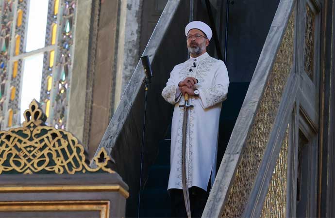 أنقرة (زمان التركية) – ألقى رئيس الشؤون الدينية التركية البروفيسور علي أرباش، خطبة الجمعة في مسجد آيا صوفيا عن فلسطين، وهو ممسكا بالسيف بيده.